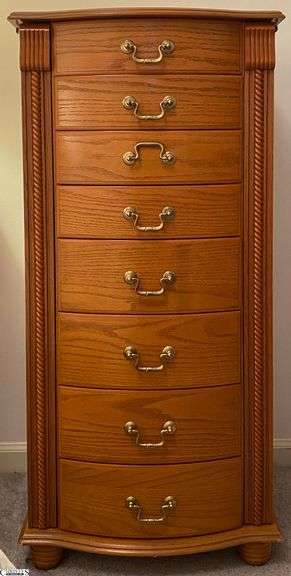 LOT 141 - Oak Tone Jewelry Armoire - 18" x 15" x 41"