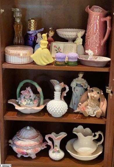LOT 118 - Assorted Perfume Bottles, Vanity Items, Vases, Figurines - Some chipping - 9.5" of tallest