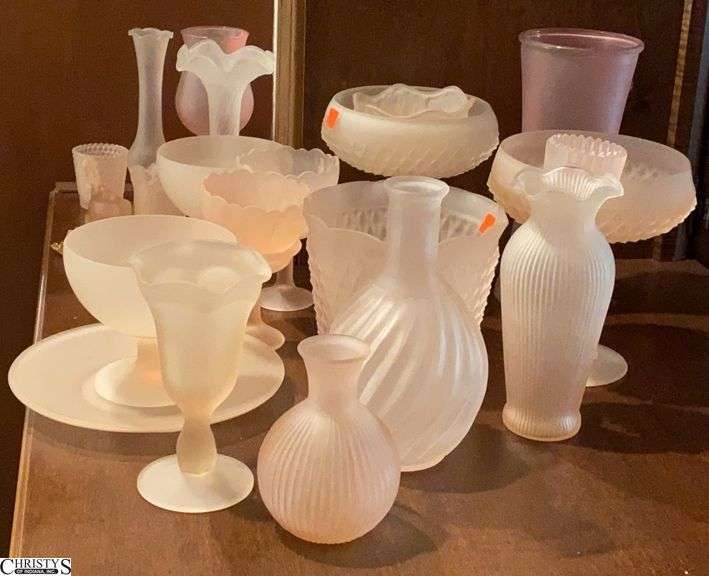 LOT 114 - Large Pink Frosted Glass Group - 10" of tallest