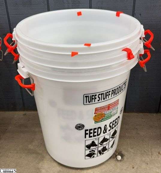 LOT 3640 - 3 Tuff Stuff Products Feed and Seed 17 Gallon Buckets