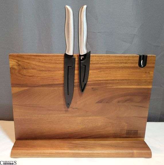 LOT 184 - Hoshanho Wooden Magnetic Knife Board w/ Sharpener & 2 Knives