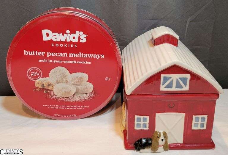 LOT 177 - Pioneer Woman Barn/Dog Cookie Jar w/ Tin of Cookies