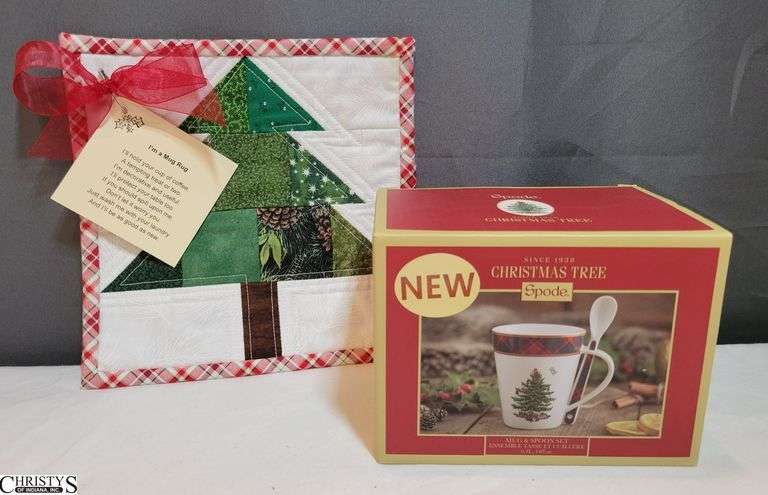 LOT 148 - Christmas Tree Mug Rug and Mug w/ Spoon