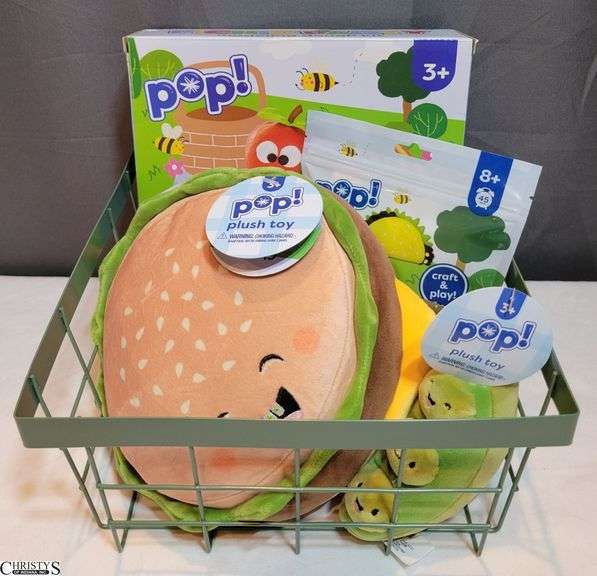 LOT 146 - Pop! Basket: Hamburger Plush, Modeling Dough Kit, Mini Air-Dry Clay Kit, Plush Peas