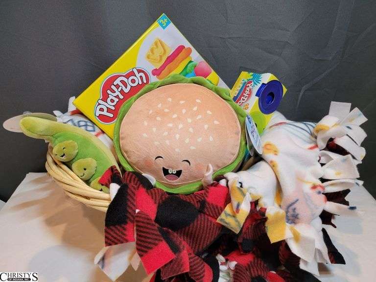 LOT 145 - Toddler Basket: Pop! Plushes and Playdoh Kits with 24" x 48" Fleece Blanket